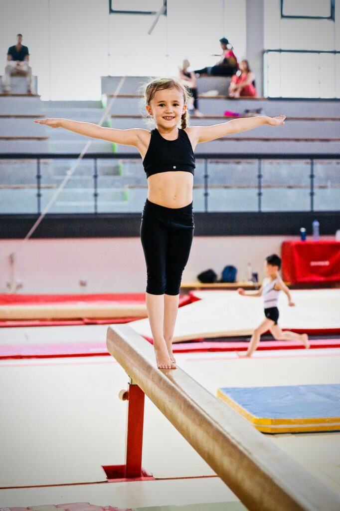 Un parcours est ensuite proposé pour découvrir les bases de la gymnastique sur les agrès (poutre, barre, trampoline...) qui sont adaptés à leur âge.